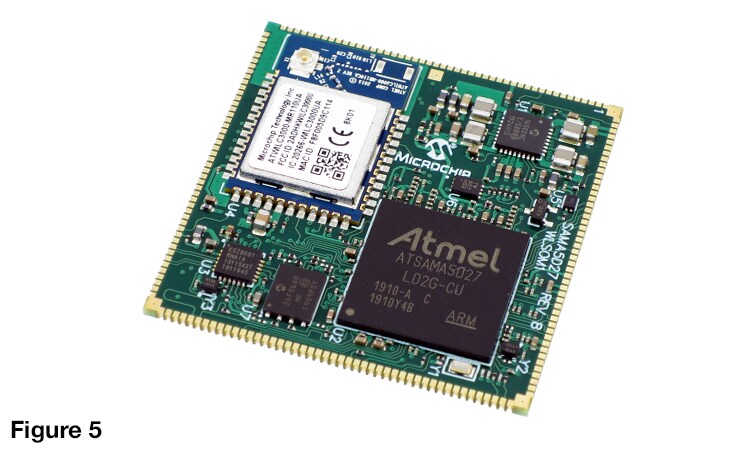 Figure 5. SAMA5D27 Wireless SOM1 (WLSOM1) is a small single-sided System-On-Module (SOM).