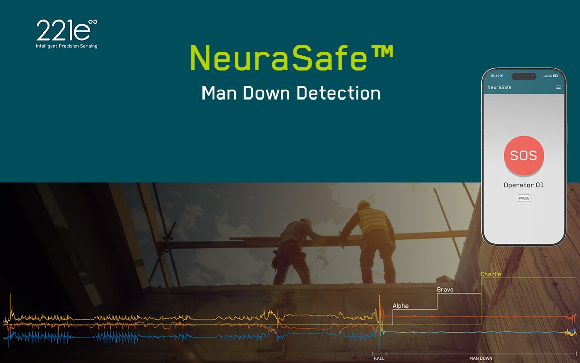To address these challenges, 221e developed NeuraSafe™, which detects falls and man-down scenarios with exceptional accuracy. NeuraSafe is an embedded Artificial Intelligence (AI) software platform that brings intelligence to Personal Protective Equipment (smart PPE). Built on inertial measurement unit (IMU) sensor data and proprietary machine learning algorithms, the 221e solution powers smart wearable devices that act decisively when seconds count.