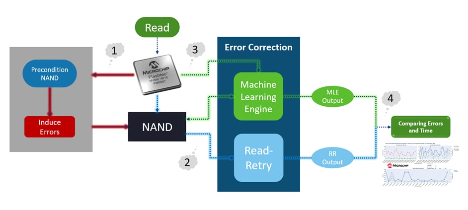 To test the model, we used preconditioned NANDs with induced errors, then used the MLE model and Read-Retry for error correction and compared the results.