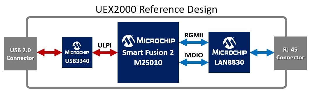 Microchip’s SmartFusion®2 SoC FPGAs (M2S010) are delivering reliable USB 2.0 extension over standard Ethernet cabling for Semtech’s UEX1000 and UEX2000 USB extender solutions. The reference design and evaluation units showcase Microchip’s Total System Solution (TSS) with the USB3340 ULPI PHY and LAN8830 triple-speed Ethernet PHY, with the LAN7800 USB-to-Ethernet controller available for SuperSpeed designs. These solutions are widely used in professional AV, industrial control systems and manufacturing automation, where low power, performance and long-term reliability are critical.