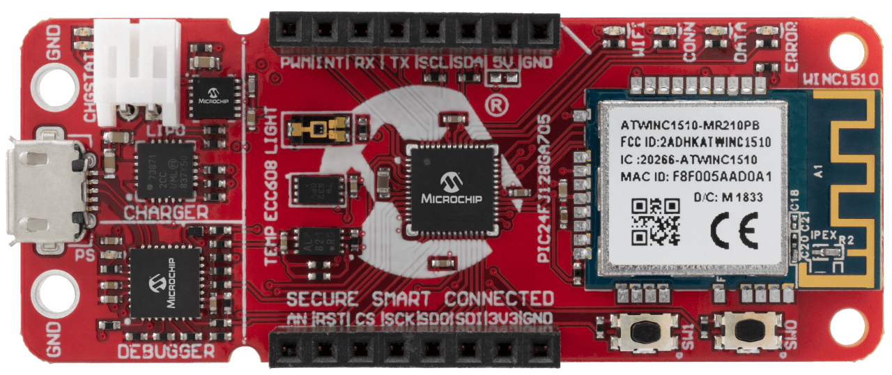 - Wi-Fi connectivity to Google Cloud: The ATWINC1510 is an industrial-grade, fully certified IEEE 802.11 b/g/n IoT network controller that provides an easy connection to an MCU of choice via a flexible SPI interface. The module relieves designers from needing expertise in networking protocols.