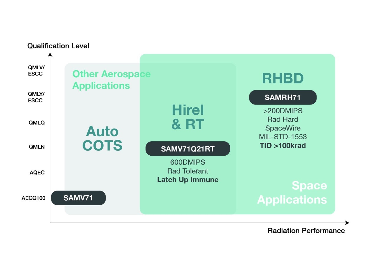 - SAMV71Q21RT-DHB-SV in ceramic space-grade QFP144 package, QMLV equivalent