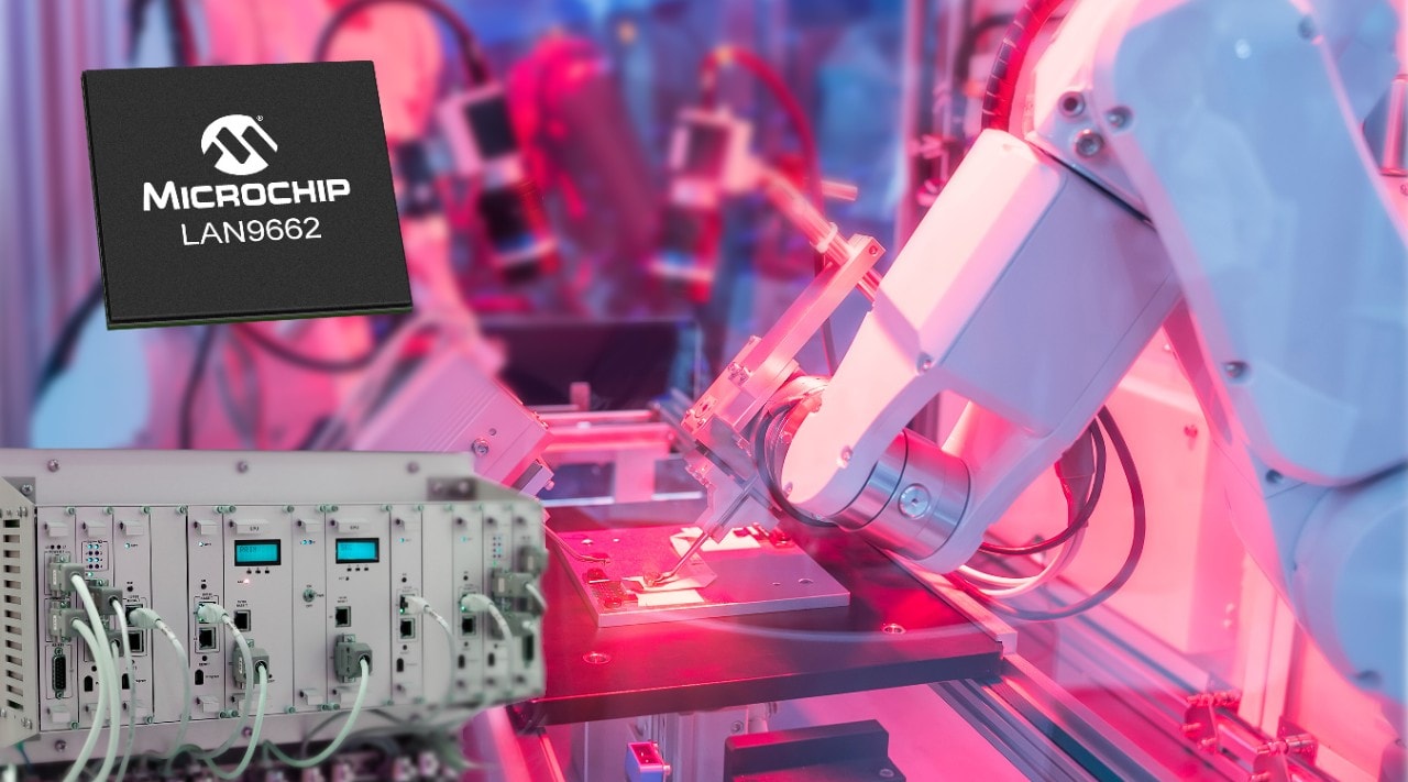 CHANDLER, Ariz., August 22, 2023 — Industrial automation and digital transformation are driving market growth for scalable and standardized networking solutions to address the needs of commercial Operational Technology (OT) deployments. To provide automation manufacturers with a comprehensive networking solution, Microchip Technology (Nasdaq: MCHP) today announces the LAN9662 Gigabit Ethernet Switch with four ports, Audio-Video Bridging and Time Sensitive Network (AVB/TSN), two integrated 10/100/1000BASE-T PHYs and a 600 MHz Arm® Cortex®-A7 CPU subsystem.
