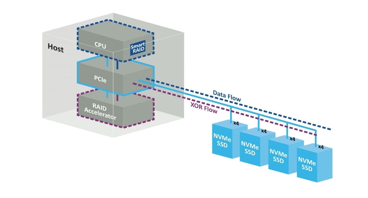Leveraging Microchip’s PCIe® storage controllers as the underlying hardware to provide a supporting role for CPU offload and RAID acceleration, the accelerators separate the storage software stack to utilize the expanded host PCIe infrastructure for optimized data flows and connectivity. The SmartRAID 4300 family takes a new approach to NVMe RAID by disaggregating Microchip’s Smart Storage platform into separate software and hardware components.