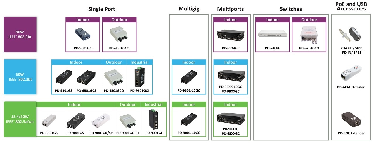 Looking for Power-over-Ethernet (PoE) Solutions? As one of the inventors of the PoE technology and thought leader in the development of the PoE standards, Microchip’s PoE injectors/midspans and switches offer a flexible and reliable PoE powering solution for many ethernet devices.