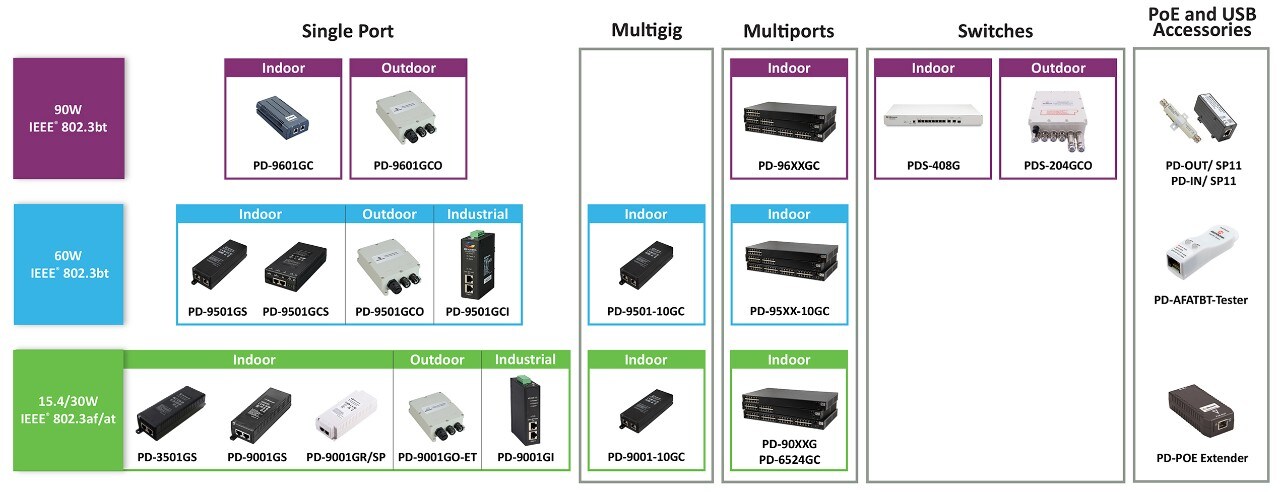 Looking for Power-over-Ethernet (PoE) Solutions? As one of the inventors of the PoE technology and thought leader in the development of the PoE standards, Microchip’s PoE injectors/midspans and switches offer a flexible and reliable PoE powering solution for many ethernet devices.