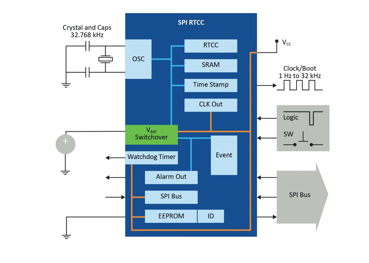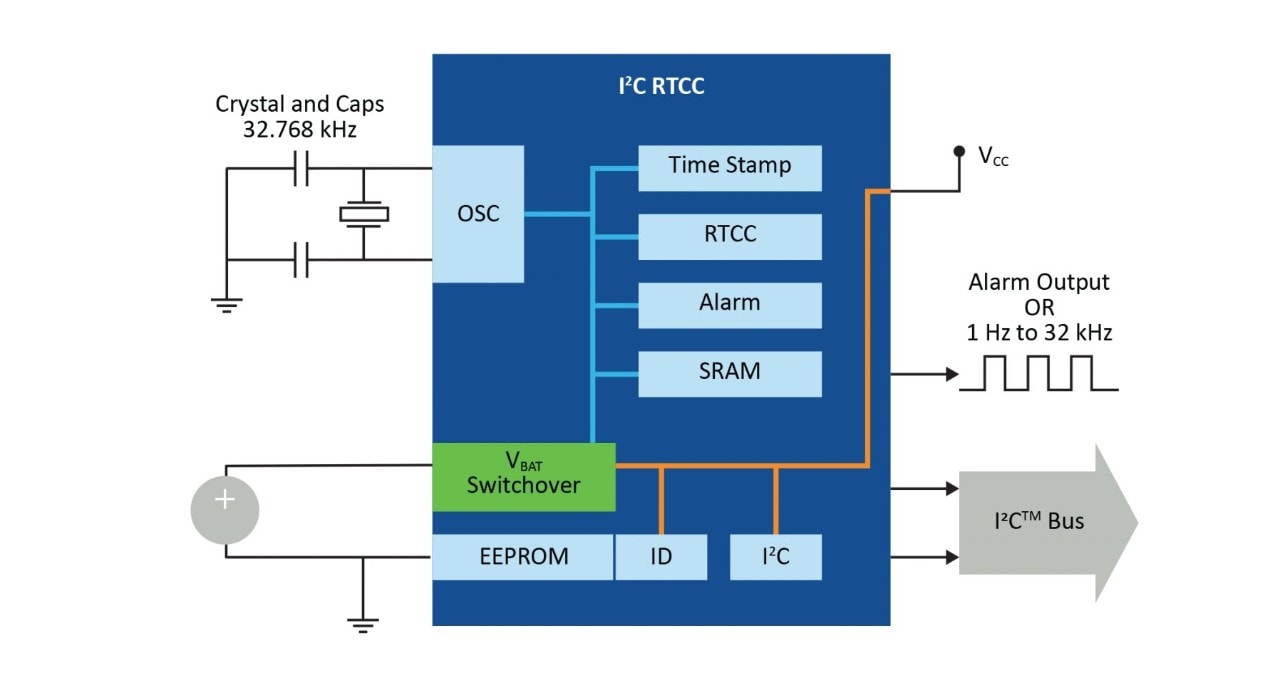 Provide any Ethernet application with its own unique identification using the RTCC’s EUI-48 or EUI-64 MAC address.