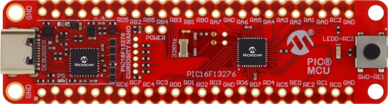 The PIC16F13276 Curiosity Nano Evaluation Kit (Part No. EV18Z11A) provides full programming and debugging support to accelerate development and reduce time to market.
