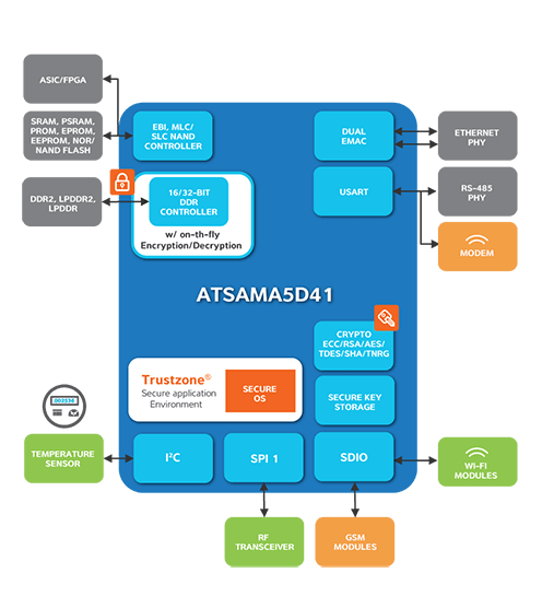 Powerful encryption engines supporting public key algorithms (RSA, ECC), software protection with on the fly DDR encryption/decryption and secure boot, and tamper detection with secret key storage