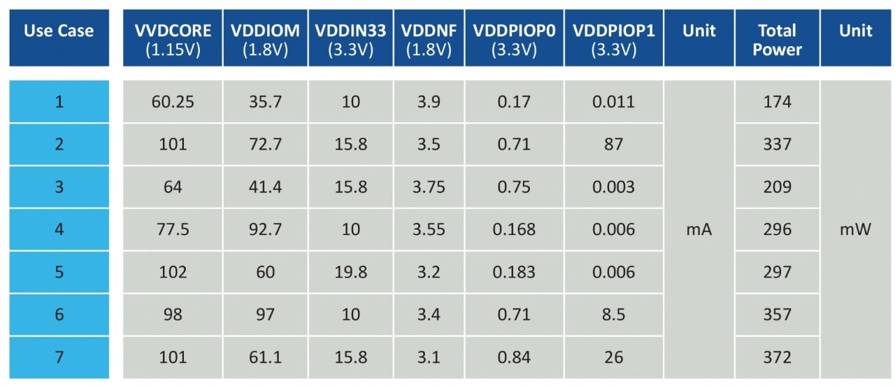 We ran a power consumption analysis using real use case scenarios and summarized the results in the tables below, which highlight the low-power benefits of hybrid MCUs.