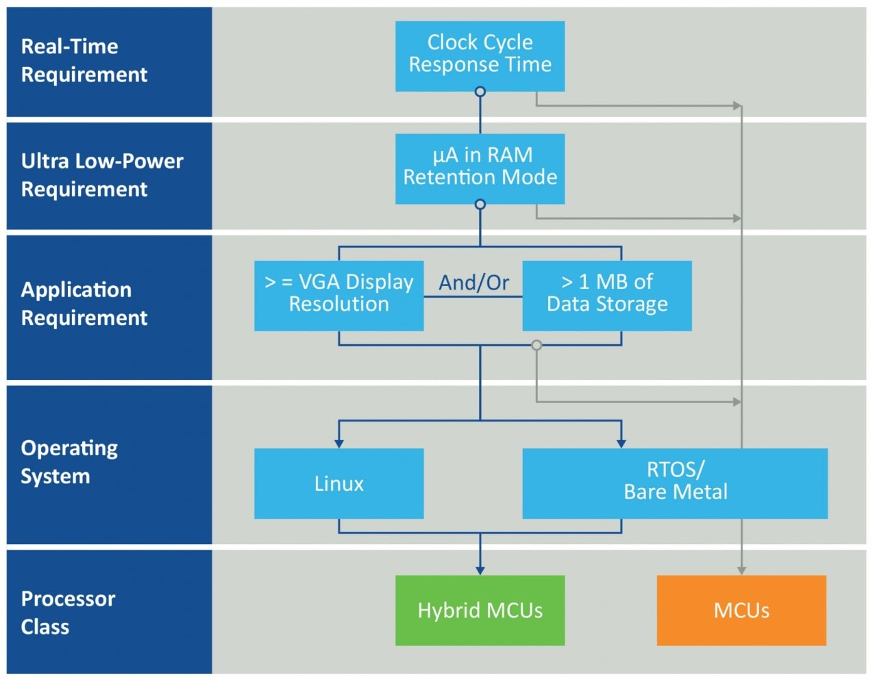 However, a hybrid MCU can handle these use cases. Consult the diagram below for more information about choosing between hybrid MCUs and MCUs.