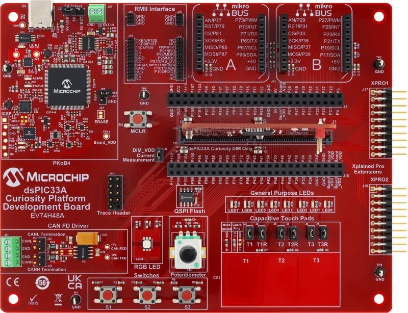 Our high-performance, 32-bit dsPIC33A family of DSCs with a Double-Precision Floating Point Unit (DP-FPU) provides up to 200 MHz operation. The dsPIC33A DSCs come with a range of hardware safety and security features that enables development of automotive motor control, advanced sensing and real-time control, lighting and power conversion applications.