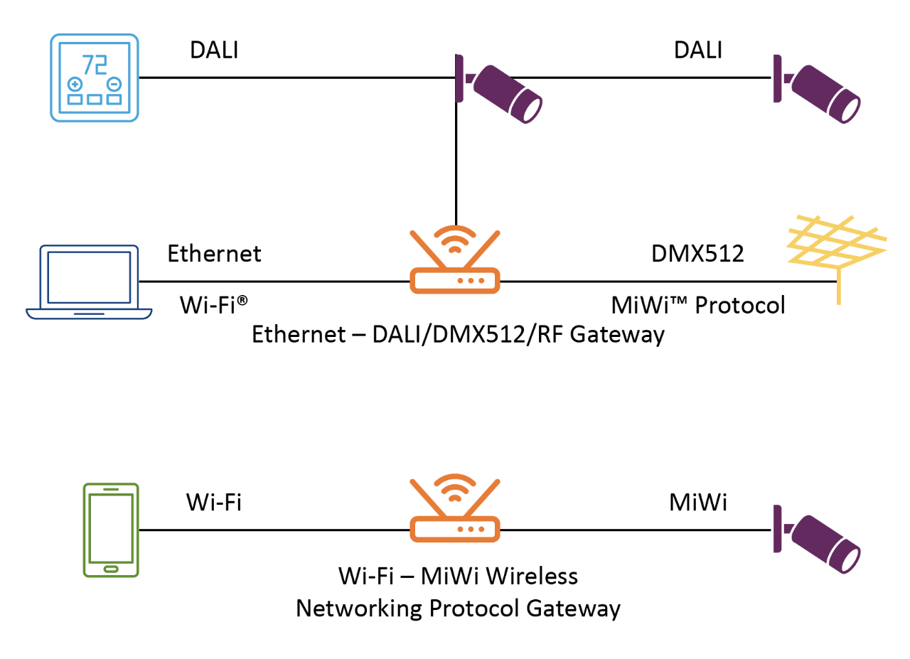 Our solutions will help you enable these and other capabilities in your intelligent lighting design. You can create custom topologies that support multiple wired and wireless communication protocols to meet the requirements of your specific application and installation environment.