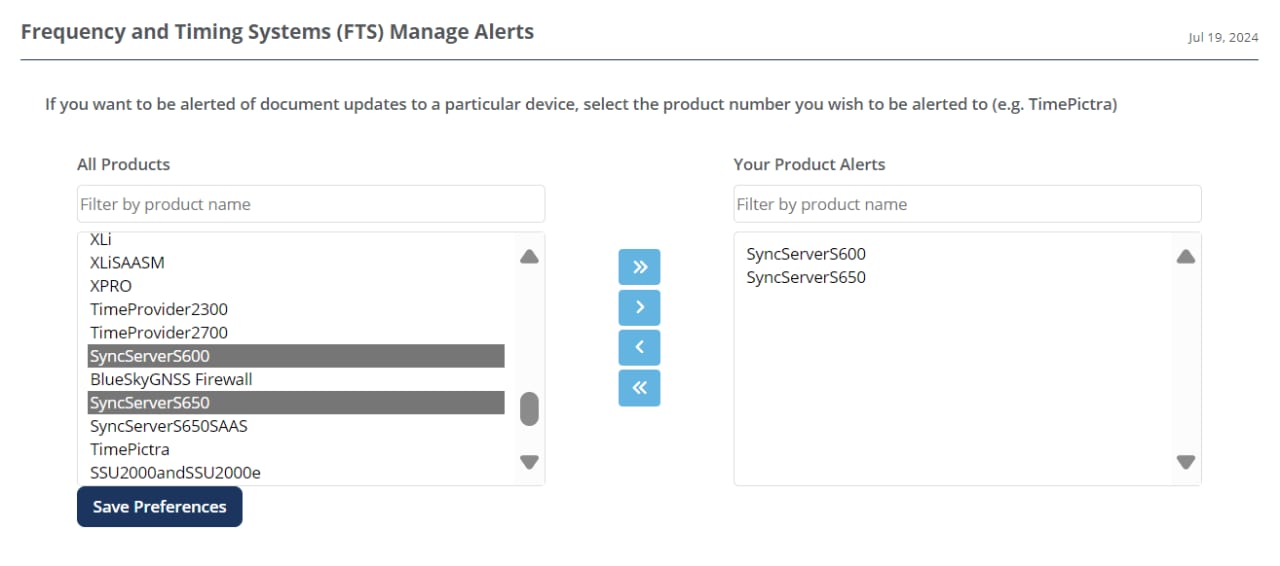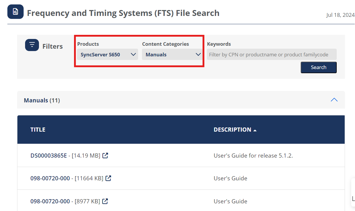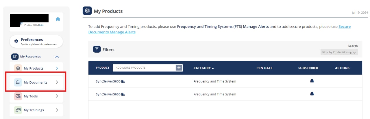 Log into your myMicrochip account and you will see the following features and options in the “Frequency and Timing Systems (FTS)” submenu in the toolbar on the myMicrochip Preferences page when you click on the dropdown arrow: