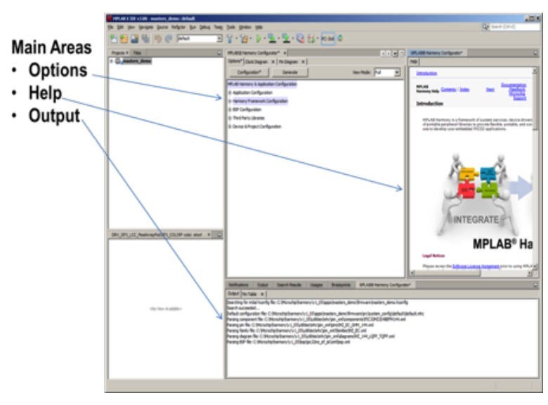 MPLAB Harmony provides a MPLAB Harmony Configurator (MHC) MPLAB-X IDE plug-in that can be installed in MPLAB X IDE to help you create your own MPLAB Harmony applications. It supports configuration and code generation for all MPLAB Harmony components and 3rd-party software (coming soon). Additional features: