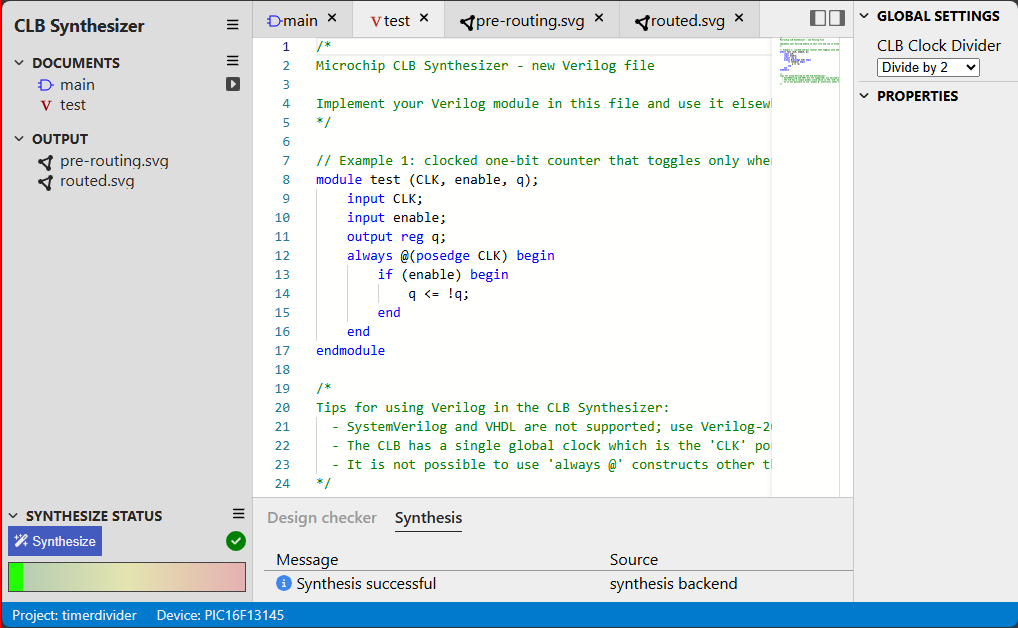 The Configurable Logic Block (CLB) Synthesizer is the simplest entry into programmable logic for microcontroller engineers, while still delivering the advanced features experienced FPGA designers require. This CLB Synthesizer supports the PIC16F13145 MCU family.
