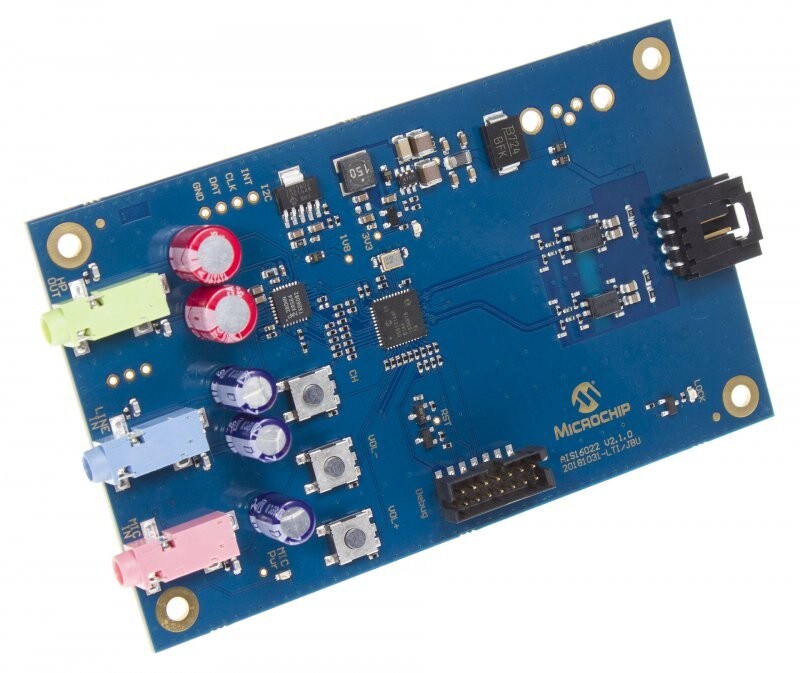 This board can sink or source stereo audio streams from or to the INICnet™ technology network. Any incoming audio stream on INICnet™ technology can be sent to its headphone jack to make it audible on a connected headphone.
